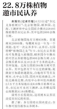 自开展义务植树以来,北京已有超过1.2亿人次植树2.3亿余株。如今的首都居民,正以多种形式的义务植树,为“推窗见绿、出门入园”的首都花园城市建设贡献新的力量。