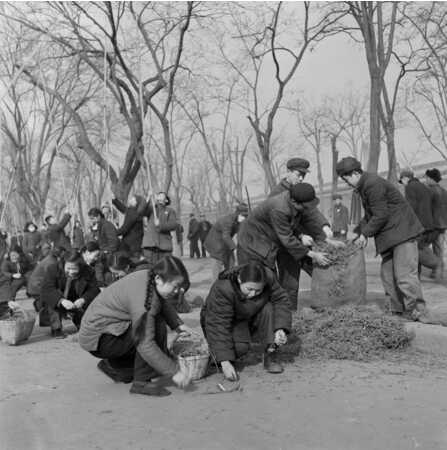 为扭转这一局面,1955年,北京市委号召首都各厂矿、企业、学校、机关、团体、部队和郊区广大农民群众积极参加植树造林运动,改变城郊荒山、空地和河湖岸旁缺少树木林荫的面貌。(1955年4月2日《北京日报》1版,《开展群众性的植树造林运动》)一场大规模绿化首都的群众运动,在北京全面展开。
