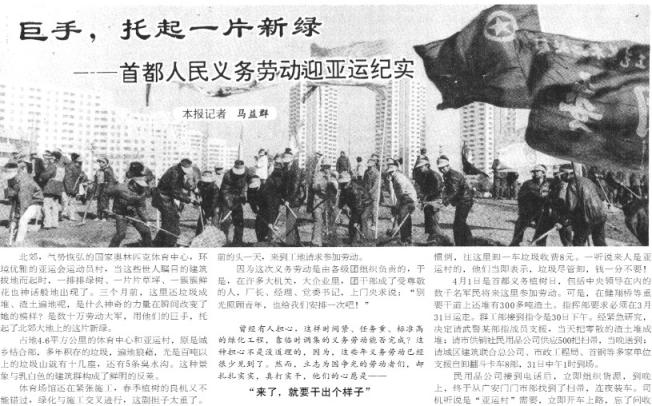 一进入90年代,北京就迎来了不同寻常的义务植树高潮。因为中国第一次举办的综合性国际体育大赛——第十一届亚运会在北京举行,亚运会的大规模绿化全要靠义务劳动完成。