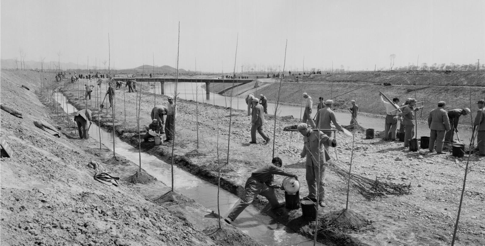 上世纪五六十年代,首都军民在京密引水渠两旁绿化。王振民摄